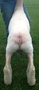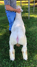 Step Up is a Dorset buck that should keep our Dorset program moving in the right direction. He is tied together very well in his front end. Step Up has tremendous spring of rib with a monster rack, shallow chested and finishes with a tremendous hip. We expect this buck to stamp his lambs with adequate muscle, correctness and consistency as the Huntrod's flock is known for. Thanks to Mark Huntrod for selling us such a quality Dorset buck.